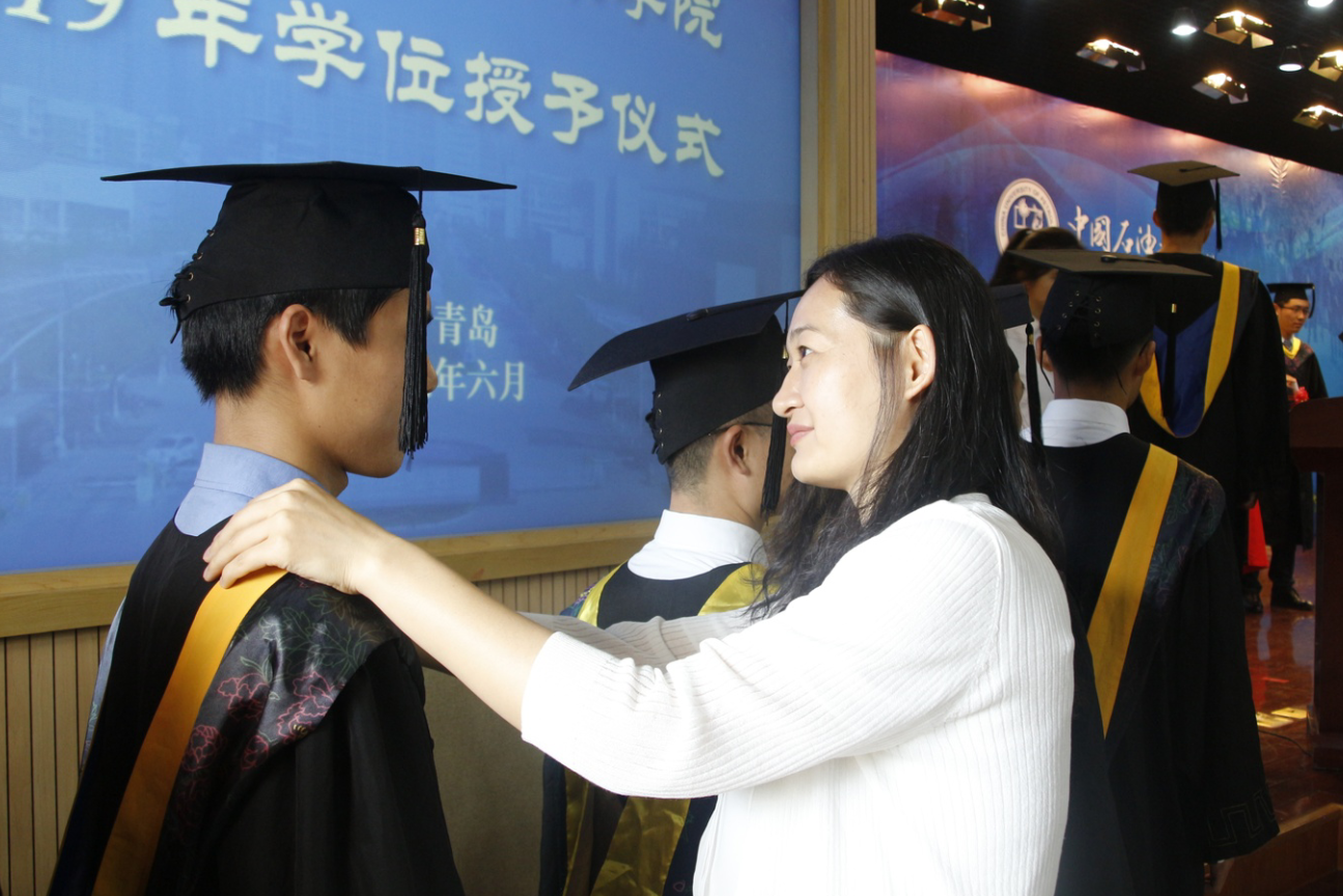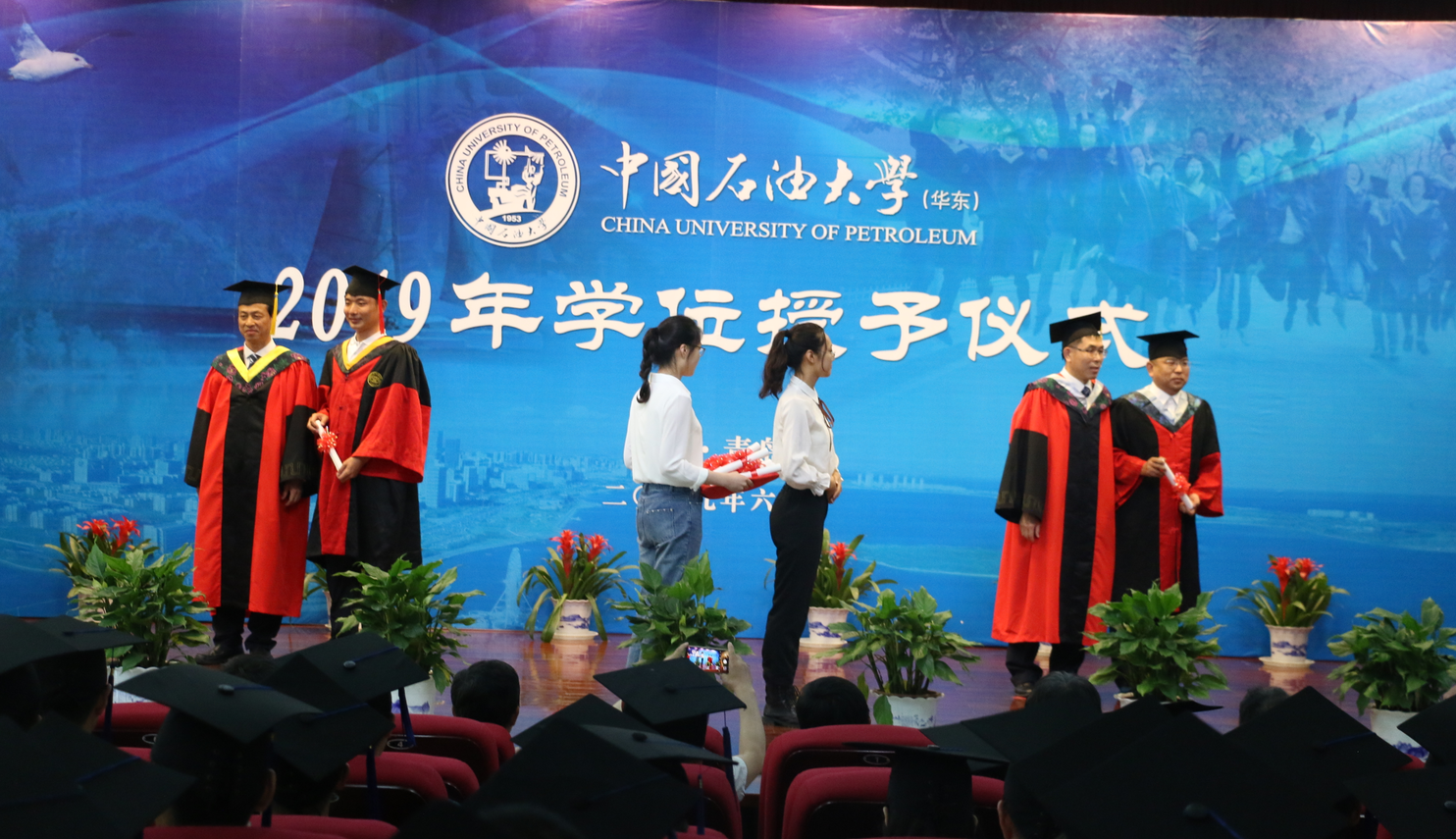 6月23日下午,金沙官网2019届毕业生学位授予仪式在逸夫礼堂隆重举行。仪式由学院副院长邓少贵主持。学院学位评定分委员会主席、院长林承焰教授,学位评定分委员会委员,教授委员会主席刘可禹教授共同为386名本科毕业生和287名硕士毕业生授予学位。