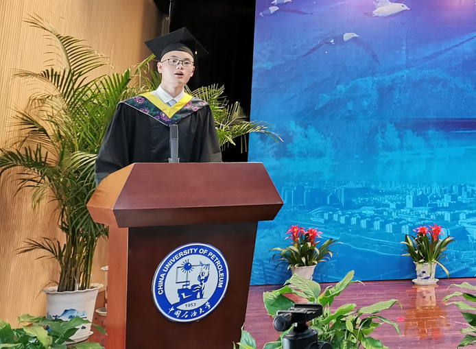 勘查技术与工程专业2015级本科生王栎作为毕业生代表发言。他结合四年的求学经历以及大学生活的点滴,分享了自己的成长经验。“感谢学院,承载了我们四年的梦想。四年的生活,是学院为我们提供了学习的平台与发展的机会,让我们在严谨的学风中学习了四年的专业知识,能怀着一身本领,奔向祖国四方。”