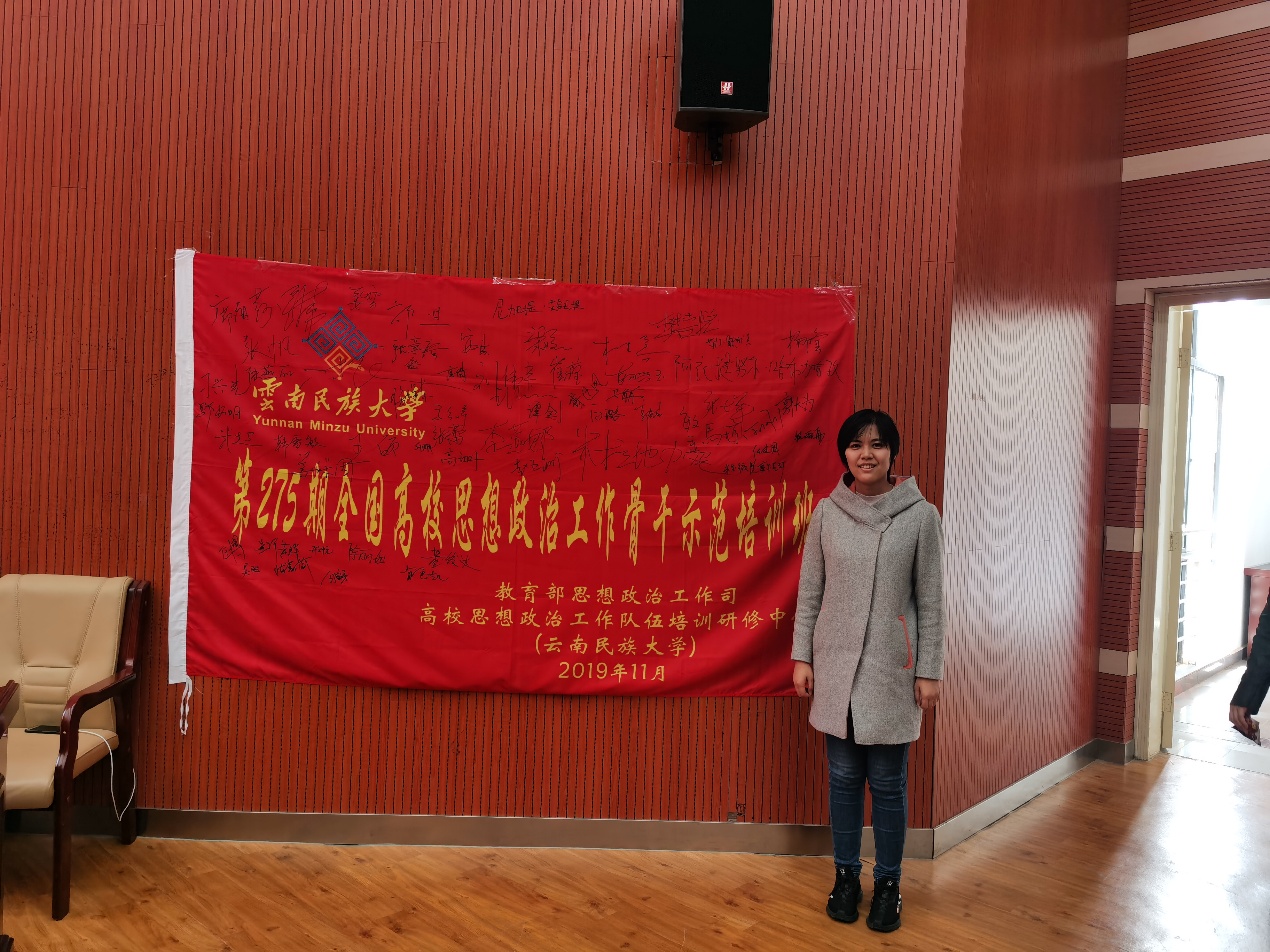 11月20-23日,教育部第275期全国高校思想政治工作骨干示范培训班在云南民族大学举行。来自全国95所高校的思想政治工作骨干教师齐聚云南昆明学习交流,金沙官网辅导员张蕾参加了此次培训。