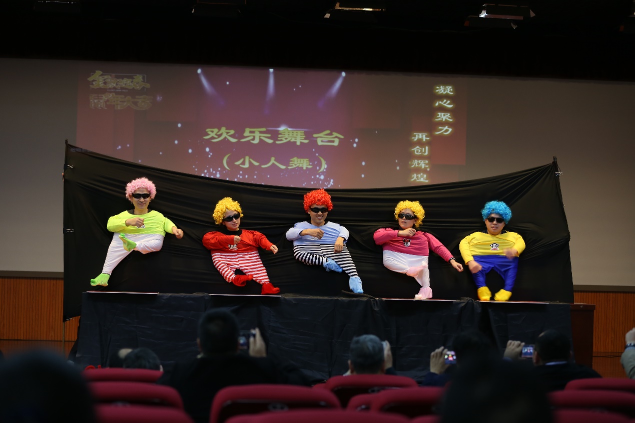 随后,新年联欢会在大学生艺术团激情洋溢的街舞表演中拉开帷幕,动感的节奏和活力四射的动作表现出当代大学生的青春魅力。地质系教师远光辉和夏鲁带来的相声《85后进站》用诙谐幽默的语言展现了青年教师青春昂扬、奋发拼搏的精神风貌。“锦绣河山美如画,祖国建设跨骏马,我当个石油工人多荣耀···”非常规油气中心教师合唱的《我为祖国献石油》,感染力十足,点燃了全场的豪迈激情。地球物理系教师表演的小人舞《欢乐舞台》将会场欢乐的气氛推向高潮,一个个“小人”诙谐的动作,再配上音乐串烧,让在场的老师们欢笑连连,纷纷举出手机记录这难忘时刻。资源系教师用独特幽默的“三句半”将2019年金沙js9线路中心的故事讲给每一个人听。在联欢会最后,测井系和院机关教师一起朗诵并合唱《我和我的祖国》,优美的旋律、深情的朗诵,表达了金沙js9线路中心广大教职工对祖国的热爱之情。