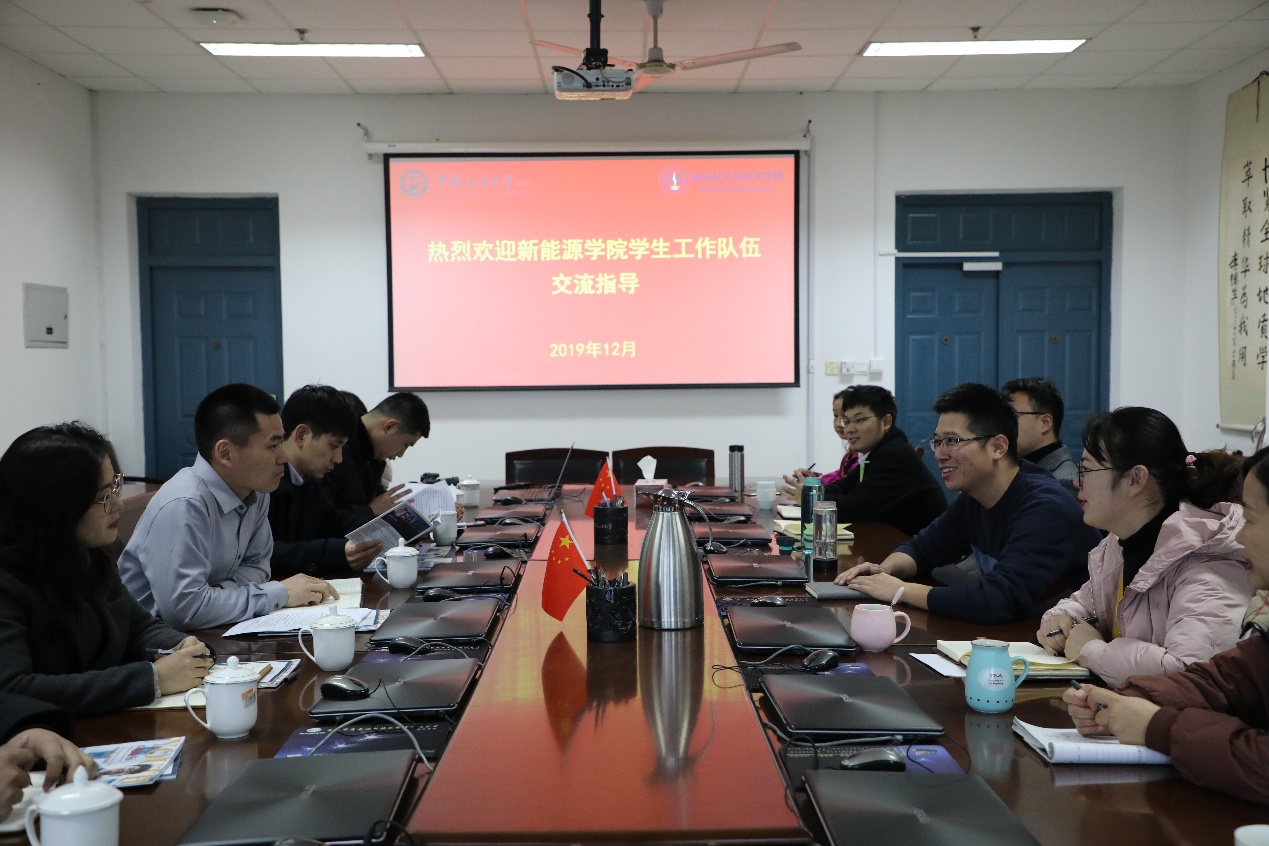 12月24日,新能源学院党委副书记郭杰一行6人来金沙官网交流学生工作,金沙js9线路中心党委副书记徐永涛及全体辅导员参与本次交流座谈。