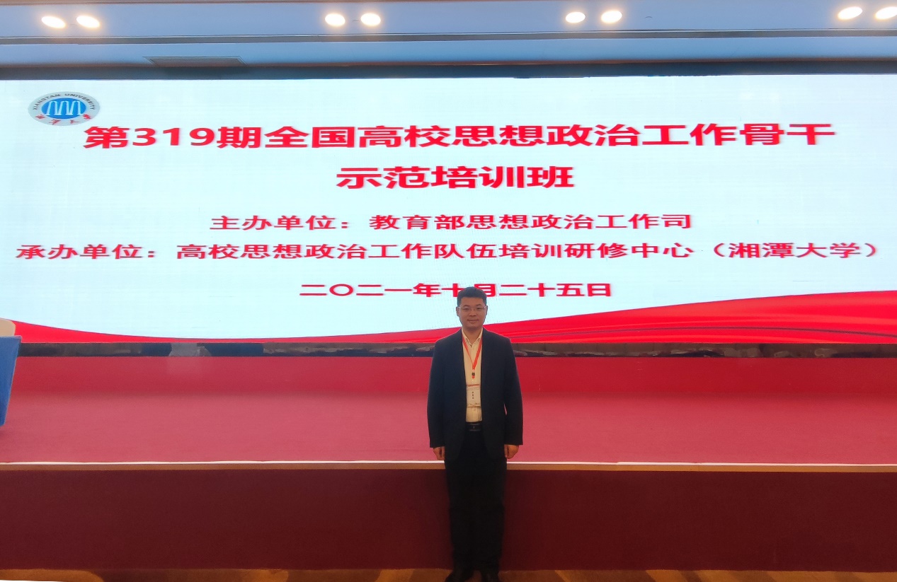 10月24日至27日,金沙官网辅导员任金恒赴湖南省湘潭市参加第319期全国高校思想政治工作骨干示范培训班,就“传承弘扬中国共产党精神谱系”进行了专题学习并顺利结业。