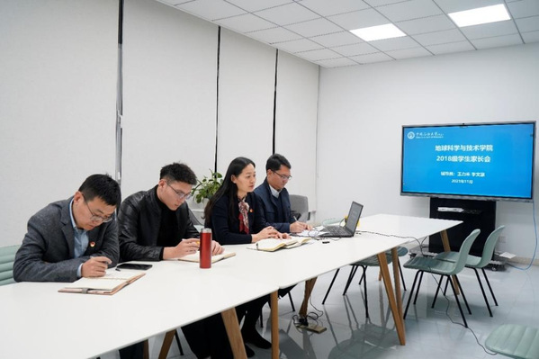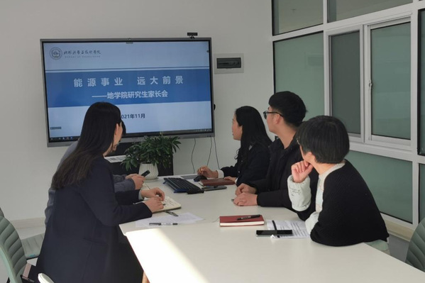 “孩子们在学校的课程压力大不大?”“孩子们在学校都能参加哪些课外活动?”“资源勘查工程专业学生未来的就业方向有哪些?”家长纷纷对着屏幕里的“主播”们提出问题。这是学院各年级线上家长会会议现场,辅导员一一为家长解答疑惑。