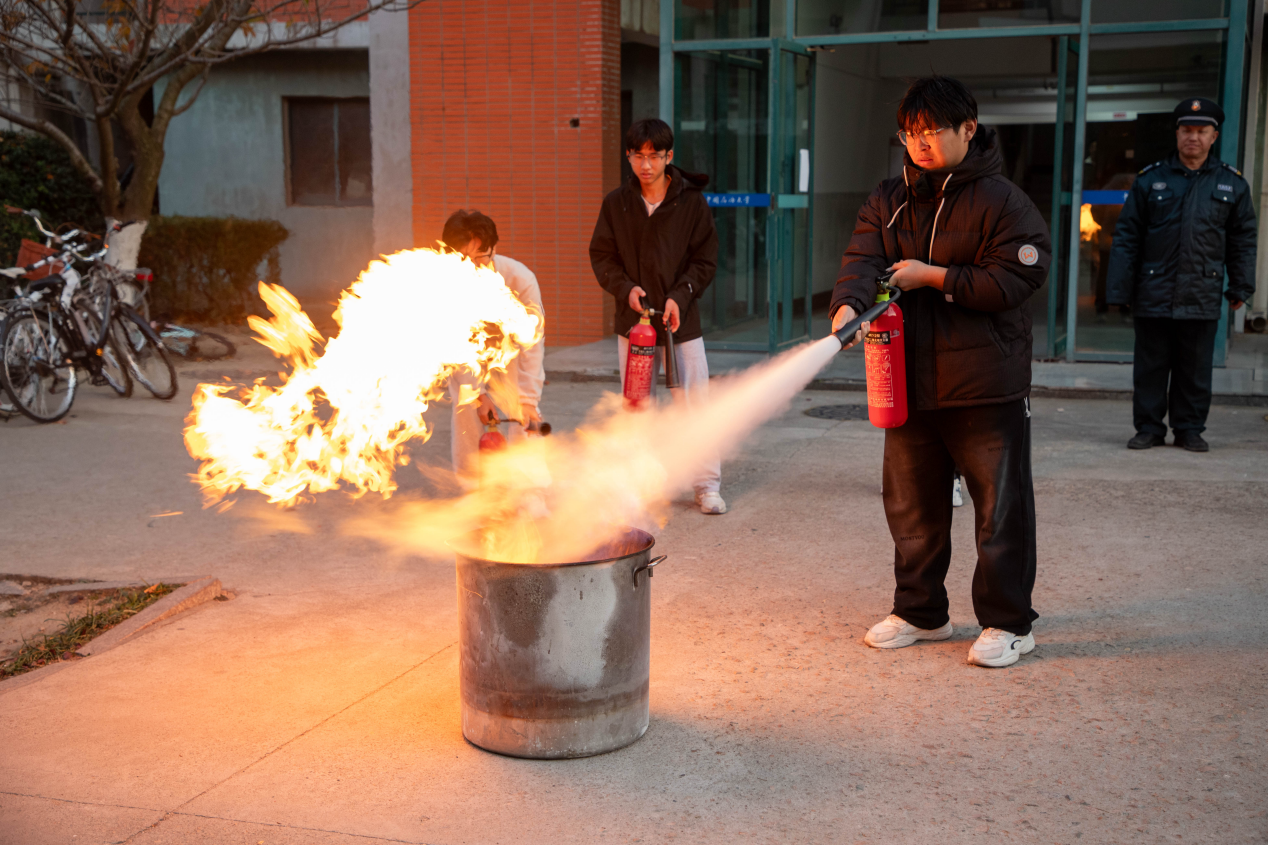 下午四点,消防应急疏散演练正式开始,宿舍楼内的学生迅速进行疏散撤离,到达集合地点,应急演练过程井然有序。随后,学校保卫处消防科孟祥钰结合今年的火灾案例讲解,介绍了公寓楼与家庭住宅发生火灾后的逃生方式,并以实操的方式,教授灭火器、灭火毯和消防栓的使用方法。讲解结束后,现场学生进行了灭火实战演练,大家踊跃参与。通过操作实践,同学们不仅掌握了灭火器的使用方法,更对消防安全知识有了更深刻的认识和理解。