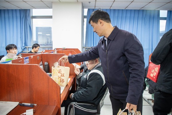 据了解,此次慰问前,学院精心设计慰问方案,采购了暖心慰问物资,同时组织辅导员和低年级学生手写祝福贺卡活动,一起装进满载祝福的“考研锦囊”。学院一直高度重视学生考研升学,领导班子研究部署推进学生考研相关工作,在工科楼C座专门设置两间考研自习室,院长宗兆云专门为大三、大四学生做考研形势分析报告,为学生备考提供全方位支持和条件保障。