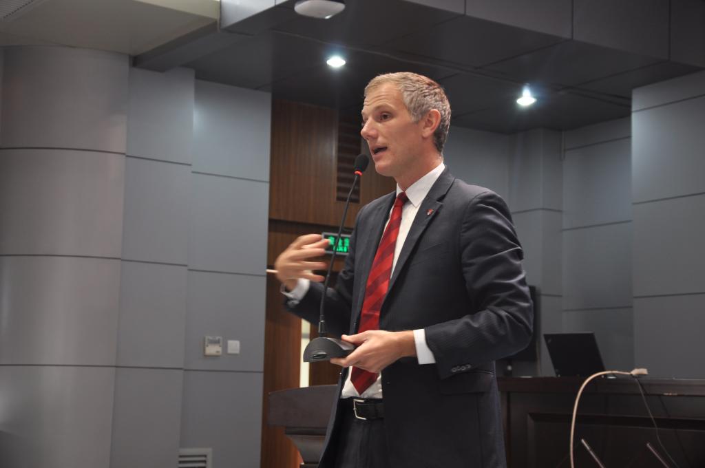 开学典礼结束后全体师生合影留念,合作班学生与麦考瑞大学老师进行了面对面交流。随后,合作办学“电气工程及其自动化”学生报告会举行,报告会由beat365平台官方网站副院长杜京义和合作班学生白碧宇共同主持,麦考瑞大学国际部主任Mr.David Harrison做题为“双语专业人才的竞争优势和就业前景”主题报告,在对学校做基本介绍后,就如何趁年轻时多努力,如何面对世界,如何成为一名优秀的工程师等方面进行了精彩演讲,受到同学们的积极响应和一致好评。最后,学生就关心的问题进行提问并得到满意答复。