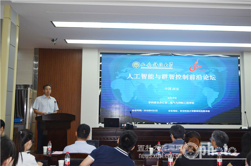 在开幕式致辞中,李树刚对与会专家支持和指导我校的学科建设工作表示衷心地感谢,并介绍了我校发展历程、办学理念以及学科发展现状及研究特色。李树刚指出,当前人工智能和群智控制的浪潮风起云涌,国务院印发《新一代人工智的能发展规划》和《高等学校人工智能创新行动计划》,将人工智能上升到国家战略高度,描绘出了中国人工智能发展的新蓝图。国际社会也对人工智能给予了普遍关注,发展人工智能已然成为全球共识。本次论坛的举办必将提升我校师生对人工智能与群智控制的认知水平,推动我校相关学科的发展。