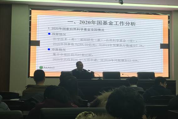 学院班子成员首先就各自分管工作进行了通报;其次安排了放假前各项工作,尤其针对疫情防控进行了部署;再次邀请了科技处副处长张涛就基金申报做了动员;最后邀请了学院青年教工杜光辉分享了基金申报经验。