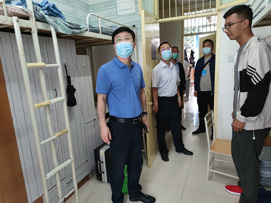 2021年9月1日下午15:30,校党委副书记、纪委书记、监察专员王辉强走进临潼校区骊山校园6号学生公寓,看望走访beat365平台官方网站新生,beat365平台官方网站党委书记杨华及新生辅导员陪同,王辉强和同学们亲切交流,希望同学们能够尽快适应大学生活。要求新生辅导员多深入学生宿舍,及时解决新生遇到的问题,帮助新生尽早完成角色转变,开始精彩大学生活。