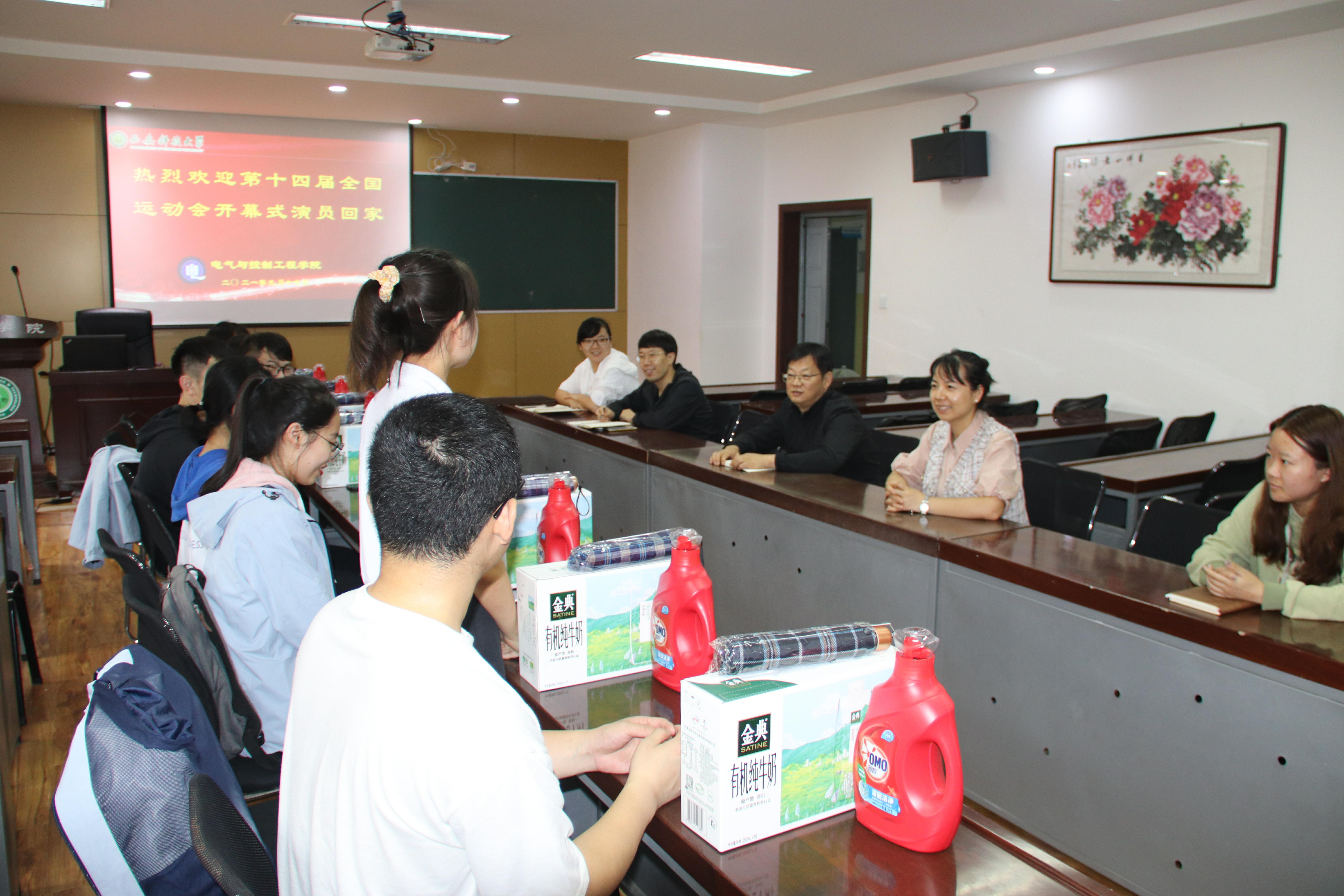 beat365平台官方网站党委副书记丁铂对大家在十四运开幕式上的精彩表演表示祝贺,为大家代表学校、代表beat365平台官方网站参加此次盛会,树立学院形象表示感谢。询问了同学们生活上和学习上的困难,并鼓励大家继续努力。并为同学们送上了学院的祝福。