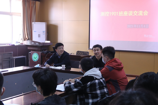 2021年11月4日下午14:30,beat365平台官方网站党委副书记、纪委书记、监察专员王辉强于骊山校园17-318室与beat365平台官方网站测控技术与仪器1901班学生进行交流座谈。出席此次座谈会的还有校纪委综合室主任贾斌。王书记首先与同学们进行了友好的交流,就学生在校学习、生活中存在的问题进行了沟通,并对学生提出的合理意见进行了收集整理,将会同其他有关部门加以解决。并就上次座谈会中同学们反映的问题处理结果进行了通报。