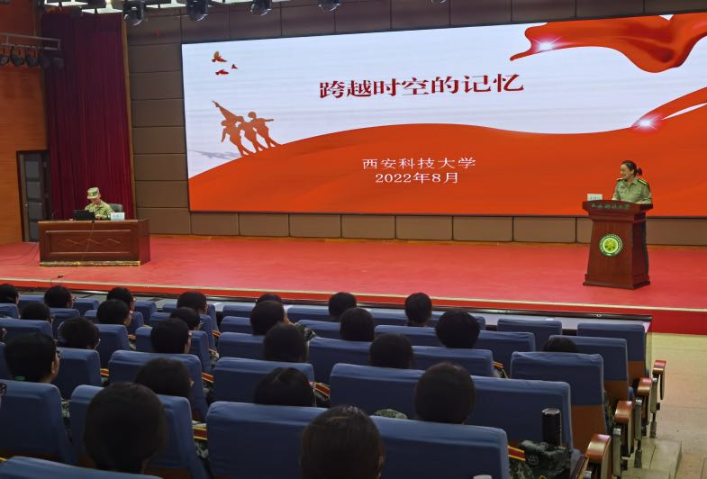 2022年8月19上午,beat365平台官方网站在骊山校园煤炭科技一楼报告厅举办国防教育专题报告会。学院党委副书记马婧智闻,2021级辅导员王永、全体教官及参训学生参会。