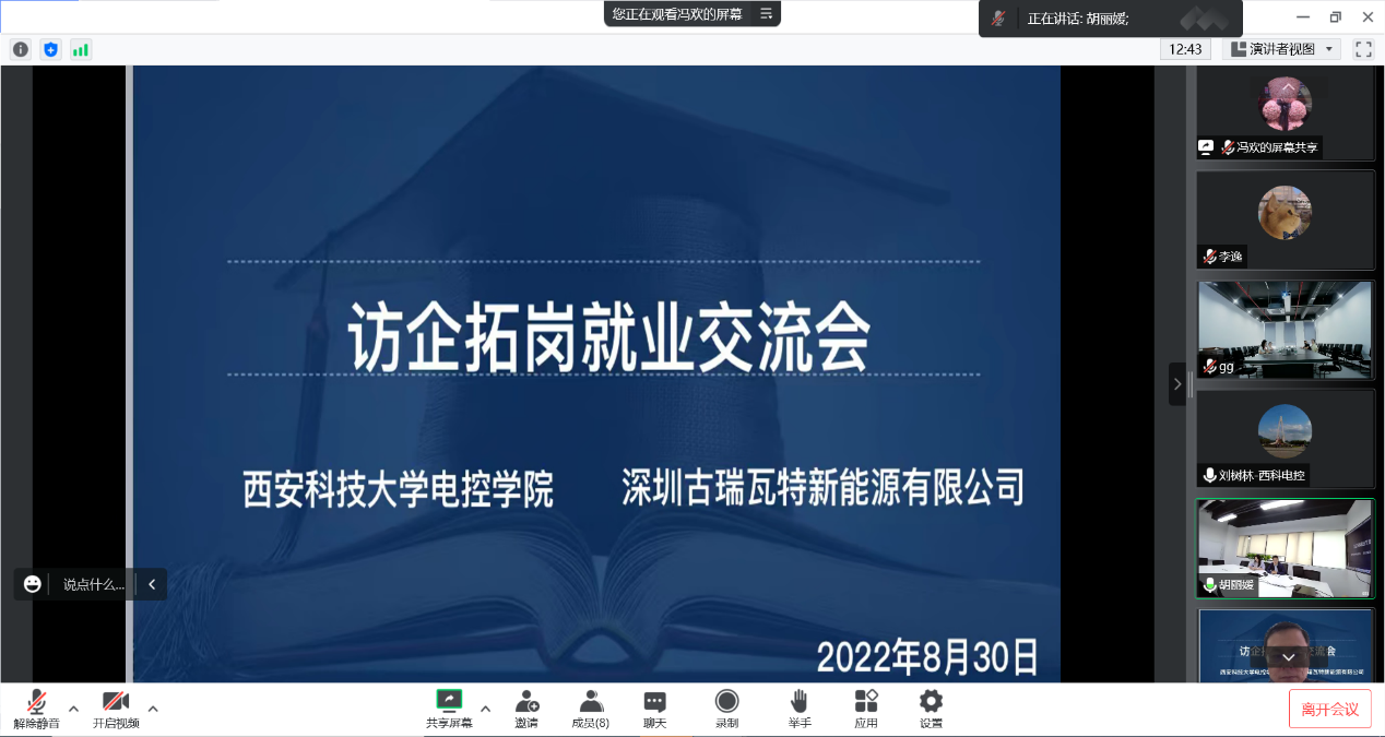 2022年8月30日上午10:00,beat365平台官方网站与深圳古瑞瓦特新能源有限公司开展了线上访企拓岗调研交流会,参加本次会议的有beat365平台官方网站党委书记杨华、院长刘树林、党委副书记马婧智闻、2023届毕业班辅导员冯欢、丁元、李逸,以及深圳古瑞瓦特能源有限公司西安研发中心经理葛磊、人力资源部胡丽媛,深圳总部人力资源部赵赛、吕桂丽、林静。