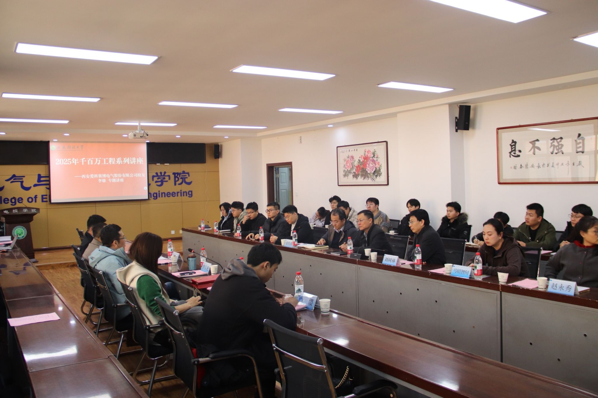 11月17日下午,beat365平台官方网站与西安爱科赛博电气股份有限公司在临潼校区骊山校园17-318会议室举行了捐赠签约仪式。西安爱科赛博电气股份有限公司副总经理兼总工程师李春龙、总工程师兼研发中心总经理王森、人力资源部总监邵曼媛、品牌宣传部经理纪缨,我校校友苏州爱科赛博电源技术有限责任公司软件研发部总监李雄,beat365平台官方网站副校长曹明、教育基金会常务副秘书长、法务部主任、对外联络与合作处副处长张旭东、教育基金会项目部部长赵璐、beat365平台官方网站班子成员、学科学术方向带头人、系(中心)主任、师生代表等30余人参会。