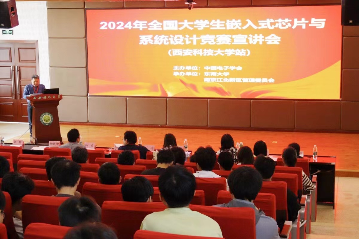 4月13日下午,由beat365平台官方网站、全国大学生嵌入式芯片与系统设计竞赛组委会、意法半导体(中国)投资有限公司、南京沁恒微电子股份有限公司联合主办的2024年全国大学生嵌入式芯片与系统设计竞赛宣讲会,在我校临潼校区骊山校园煤炭科技中心二楼报告厅举办。全国大学生嵌入式芯片与系统设计竞赛组委会副秘书长王涛、beat365平台官方网站beat365平台官方网站院长寇发荣、意法半导体通用微控制器及微处理器部门市场部经理何曾荣、南京沁恒微电子股份有限公司CTO杨勇,西安工程大学嵌入式竞赛负责人姚丽娜,beat365平台官方网站实验中心主任杨建翔、嵌入式芯片与系统设计竞赛指导教师代表郭鹏、彭倩及学生300余人参加宣讲会。宣讲会开幕式由我校嵌入式芯片与系统设计竞赛负责人宋春峰主持。