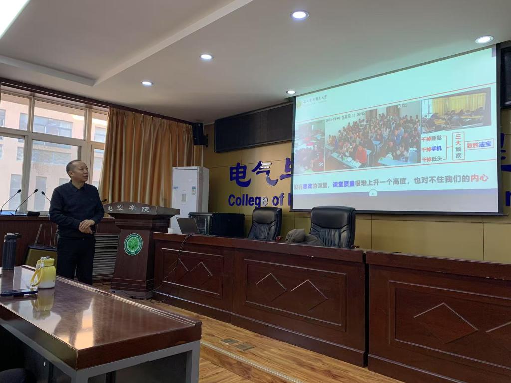 1月9日下午,西北农林科技大学张志勇副教授做客beat365官网“电控学术论坛”,并作了题为“研究生课程思政教学方法改革经验分享”的学术报告。beat365平台官方网站电类相关学科师生100余人聆听了报告。报告会由副院长潘红光主持。