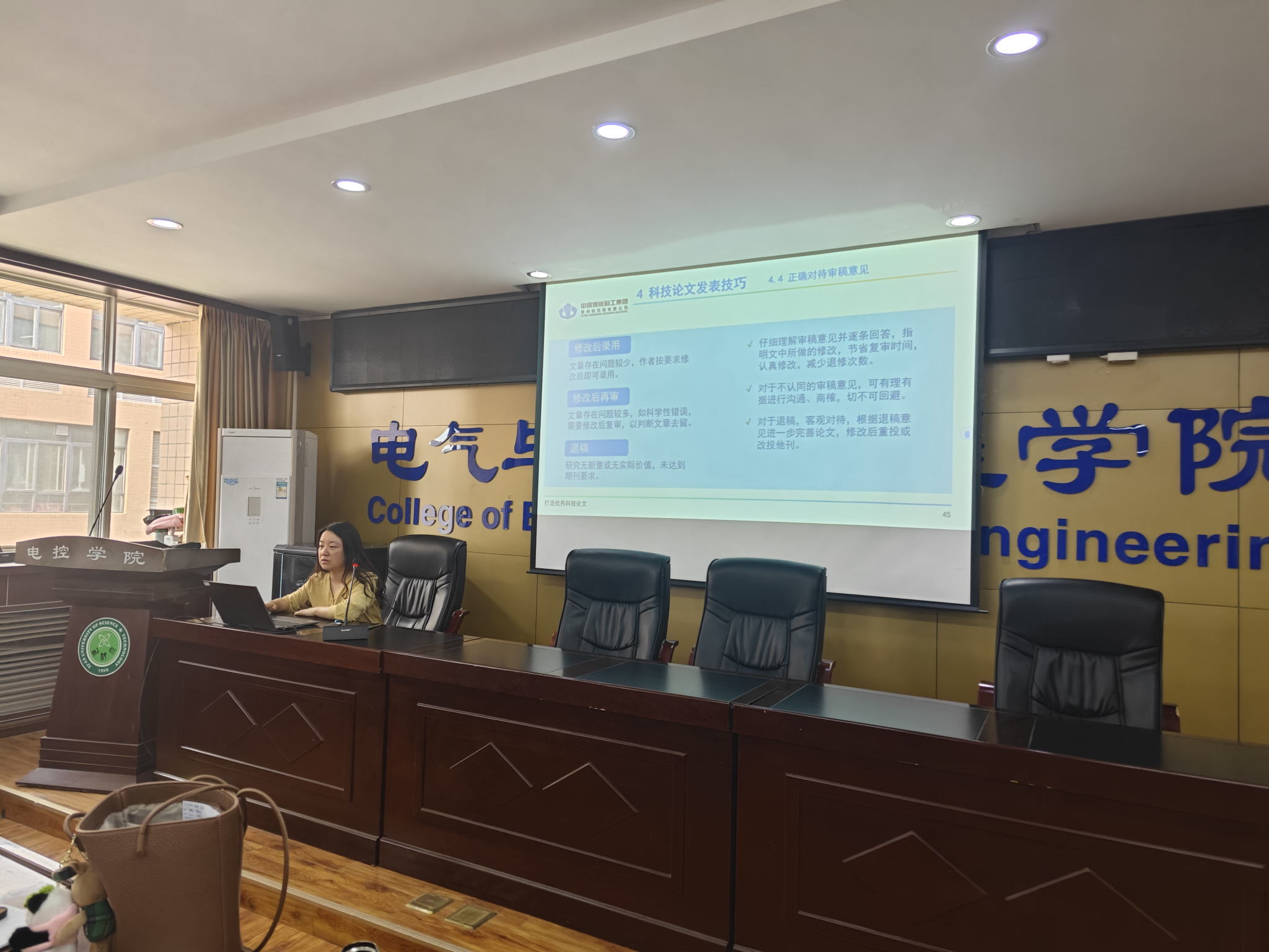 报告会上,盛男编辑围绕“科技论文写作与发表”从科技论文的重要性、科技论文写作流程、科技论文撰写格式、科技论文发表技巧、科技论文审核流程五个方面为在场分享了一系列实用的关于科技论文写作与发表的方法。最后,围绕学生们关心的写作和投稿问题进行了长时间深入的交流沟通,学生反映这是一场干货满满的讲座,反映良好。