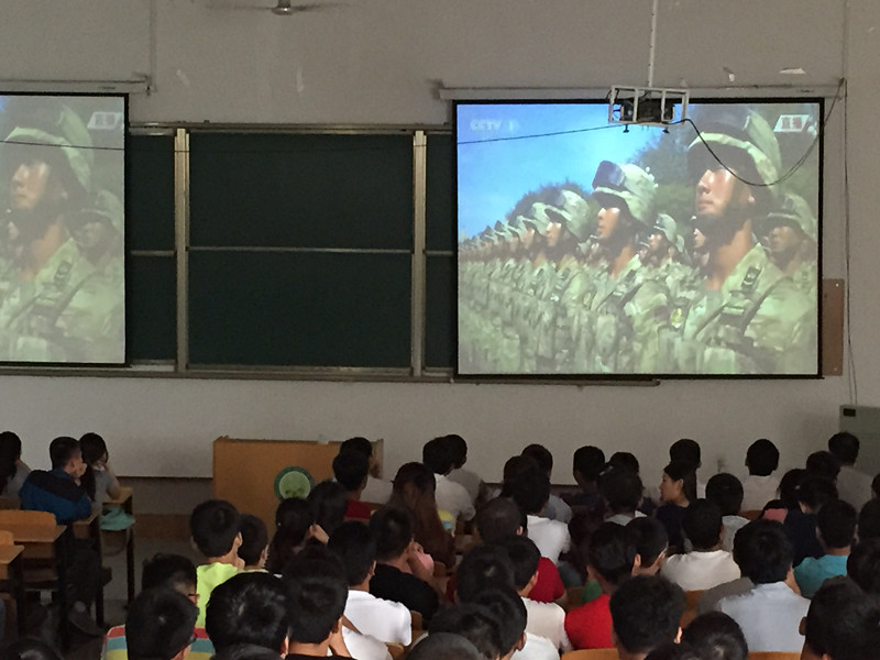 2015年9月3日上午9点,beat365平台官方网站在九教101教室组织230多名学生集体观看“纪念中国抗日战争胜利七十周年阅兵仪式”。
