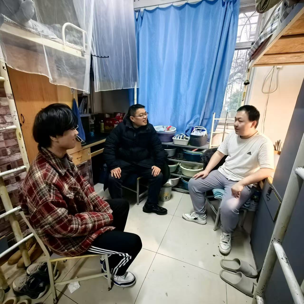 在走访宿舍过程中,班主任老师们亲切询问同学们的日常生活以及学习状态,鼓励大家要珍惜大学时光,除了学习专业课知识以外,要营造团结和谐的宿舍氛围,鼓励宿舍同学一起参加各类时间学习活动,共同提升综合素质。