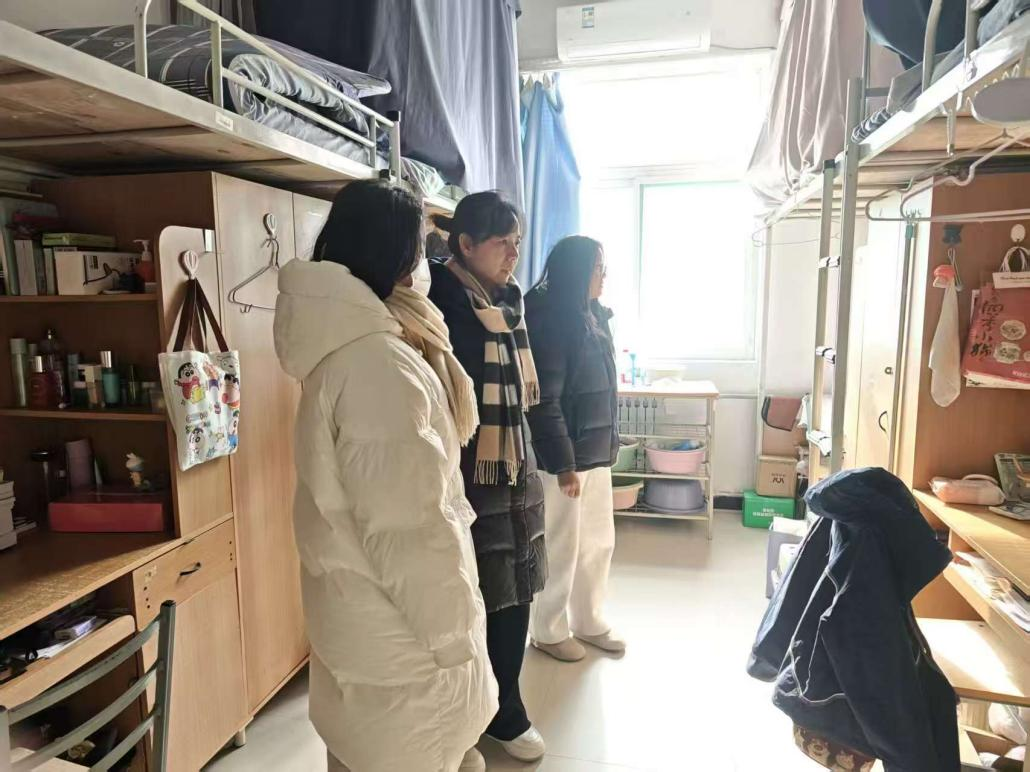 老师们对宿舍环境卫生、物品摆放、消防安全及用电规范等方面存在的问题现场督促整改,再次强调严禁使用大功率电器、禁止私拉电线。同时老师们也叮嘱同学们寒假离校前的安全注意事项,离校前切断电源、关好门窗、清理易燃杂物。