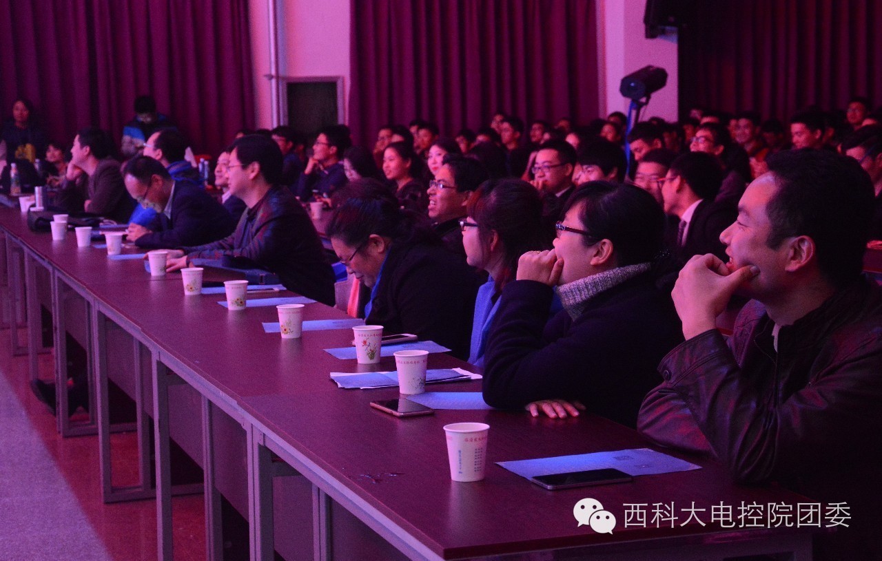 《青苹果乐园》16级辅导员于飞老师、李逸老师带领大一全体穿着可爱呆萌睡衣的班长,青春热烈的歌声,引发观众阵阵欢呼,微信墙给老师和班长的表白情真意切。接下来,院长付周兴老师、党委书记杨勇老师为在宿舍文化周活动中获奖的班级进行颁奖。街舞充满活力,好似燕子伏巢,亦像鹊鸟夜惊,他们是舞台的焦点,是青春的使者!改编《水手》表达出生活的些许无奈,但更是唱出我们大学生对未来对生活的无畏无惧,对奋进的渴望!相声演员魏纯昭与邓钊的声情并茂、妙语连珠,引得掌声阵阵,喝彩不断!乐队弹唱《春风十里》,春水初生,春林初盛,春风十里,不如你——为青春而奋斗的电控学子!