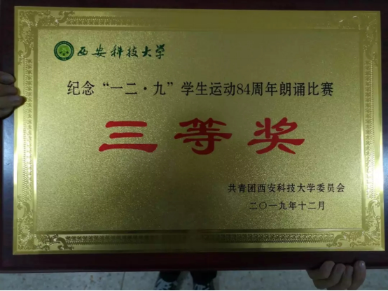 本次“一二·九”朗诵比赛是我校传统校园文化精品活动项目在形式上的创新,它有效地增进了学生们对爱国主义和集体主义的理解,体现了团组织的凝聚力和学生们的荣誉感和击败诺如的魄力。