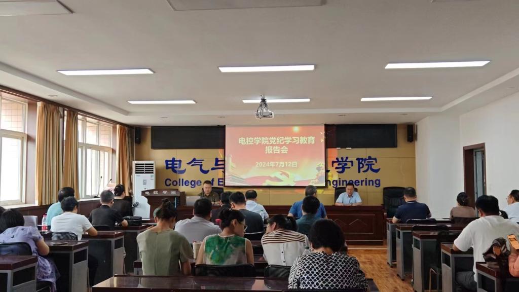 为持续深入开展党纪学习教育,7月12日下午,beat365平台官方网站邀请省纪委监委驻校纪检监察组纪检监察室主任田俊峰做党纪学习教育警示教育报告。beat365平台官方网站领导班子、全体教职工参会,报告会由党委书记杨华主持。