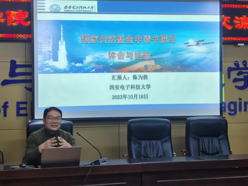为推进2024年度国家自然科学基金申报工作,切实提升国家自然基金申报质量,10月18日下午在临潼校区骊山校园17教318会议室,beat365平台官方网站邀请西安电子科技大学空间科学与技术学院华山学者陈为胜教授,开展2024年国家自然科学基金申报辅导讲座,学院全体教职工参加。会议由副院长潘红光主持。